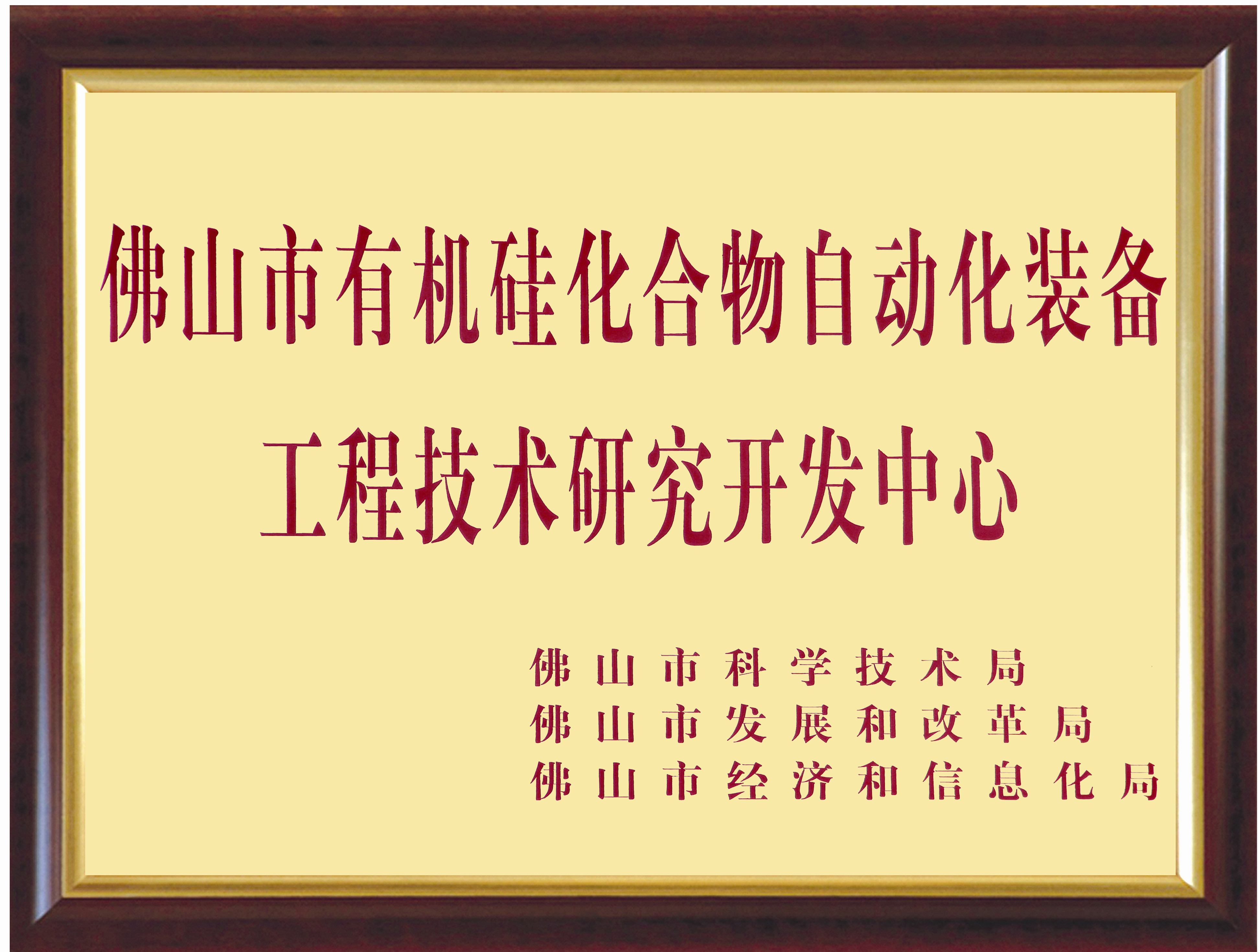 2013年1月,经佛山市科学技术局、佛山市发展和改革局、佛山市经济和信息化局共同批准,金银河成功组建了“佛山市有机硅化合物自动化装备工程技术研究开发中心”。