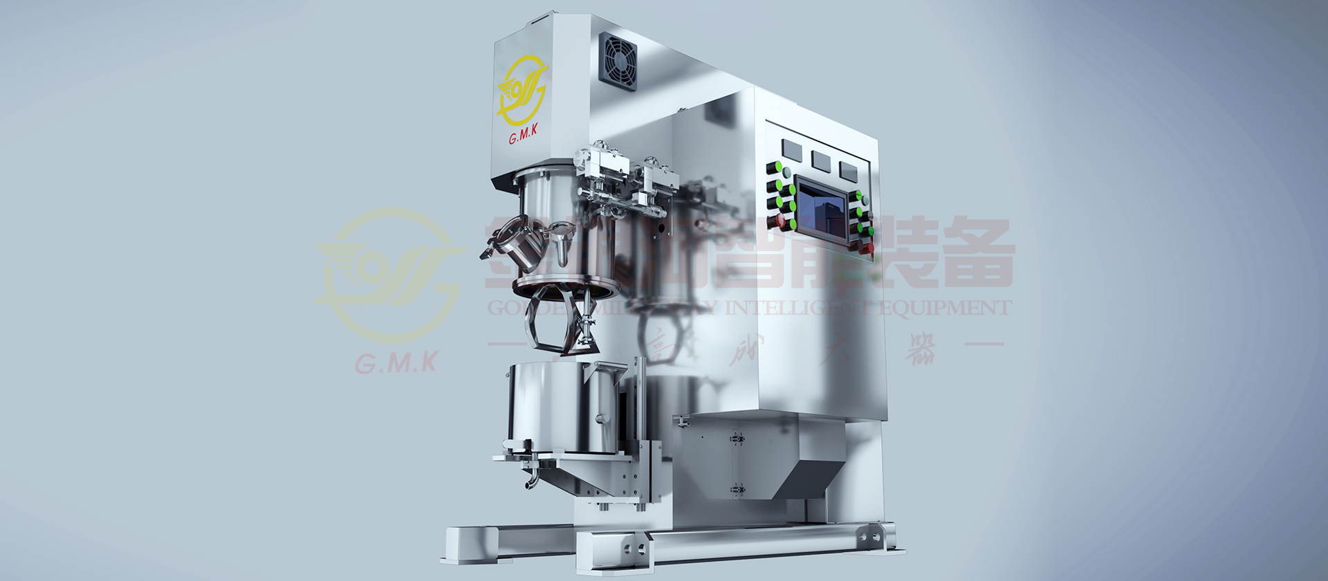 双行星动力混合机是结合了传统双行星搅拌机和高速分散机的原理,组成的一种高效的新机型,目前在新能源领域有着广泛的应用。 我司针对锂电池、电容浆料特性,在原行星式动力搅拌机的基础上,开发了具有高转速,大扭矩的增强型动力混合机,适用于干混、湿混工艺制备锂电正负极浆料。在设计过程中,我司充分考虑了搅拌器的合理转速、搅拌功率、分散线速度及合理的麻花桨形,减少高粘稠物料的阻力和桶内湍流强度的分布等因素,设计出更高效、更稳定的双行星动力混合机,可处理高黏度的浆料。